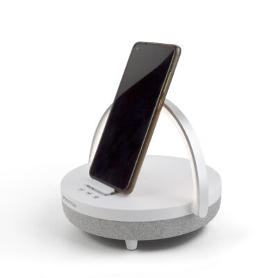 *Nota: Para utilizar la función de carga inalámbrica, por favor asegúrese de que su modelo de teléfono sea compatible con la función de carga inalámbrica. Además, la lámpara deberá estar enchufada a la corriente durante la carga del teléfono móvil.