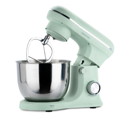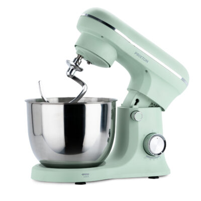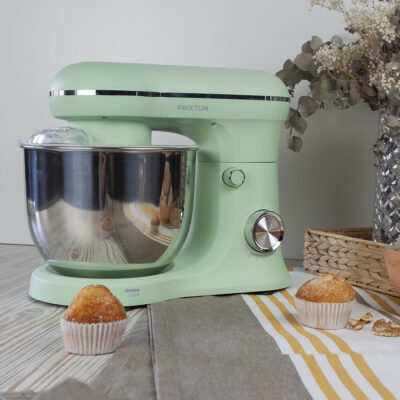 Contiene un bol resistente de acero inoxidable con capacidad de 5 litros que te permite trabajar con mayores cantidades de masa o mezcla sin que se derrame. Es duradero, resistente a la corrosión, fácil de limpiar y no retiene olores ni sabores. También es seguro para alimentos y puede soportar temperaturas más altas, lo que es útil si necesitas calentar o enfriar la mezcla.