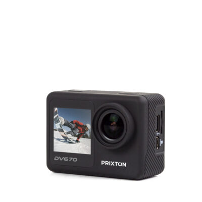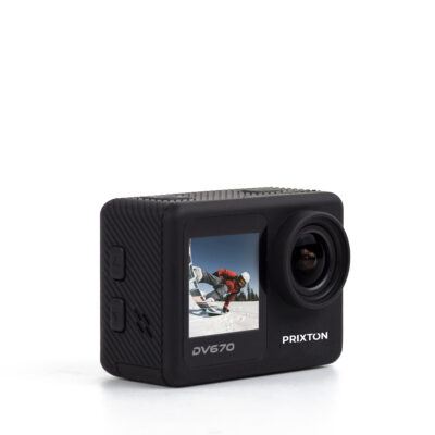 La cámara deportiva DV670 incorpora dos pantallas, una frontal y otra trasera, para que puedas escoger la que prefieras en todo momento.
