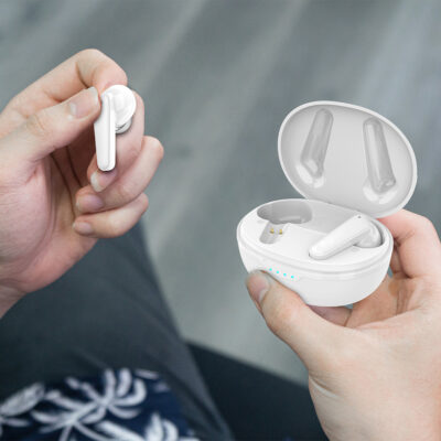 Los auriculares incluyen un estuche con método de carga Tipo-C. Con una carga de 1,5 horas te proporciona una autonomía de hasta 7 horas para llamadas y música; y de 150 horas en stand-by.