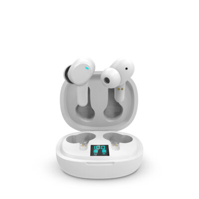 Los auriculares incluyen un estuche con método de carga Tipo-C. Con una carga de 1 hora, te proporciona una autonomía de hasta casi 4 horas para llamadas y música; y de 150 horas en stand-by. Además, incorpora una pequeña pantalla en la que se indica la carga de cada auricular.