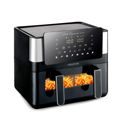Con la freidora podrás cocinar grandes cantidades, usando los dos cestos (8 L en total) para cocinar todo a la vez.