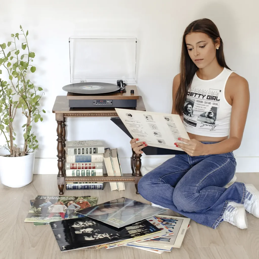 Disfruta de tus vinilos donde quieras gracias al tocadiscos Studio con diseño retro. Puedes digitalizar tus vinilos a través de la ranura MicroSD y USB. Además, si no tienes discos, ¡no hay problema! Puedes conectar tu móvil a través de la conexión inalámbrica y disfrutar de tus canciones favoritas.